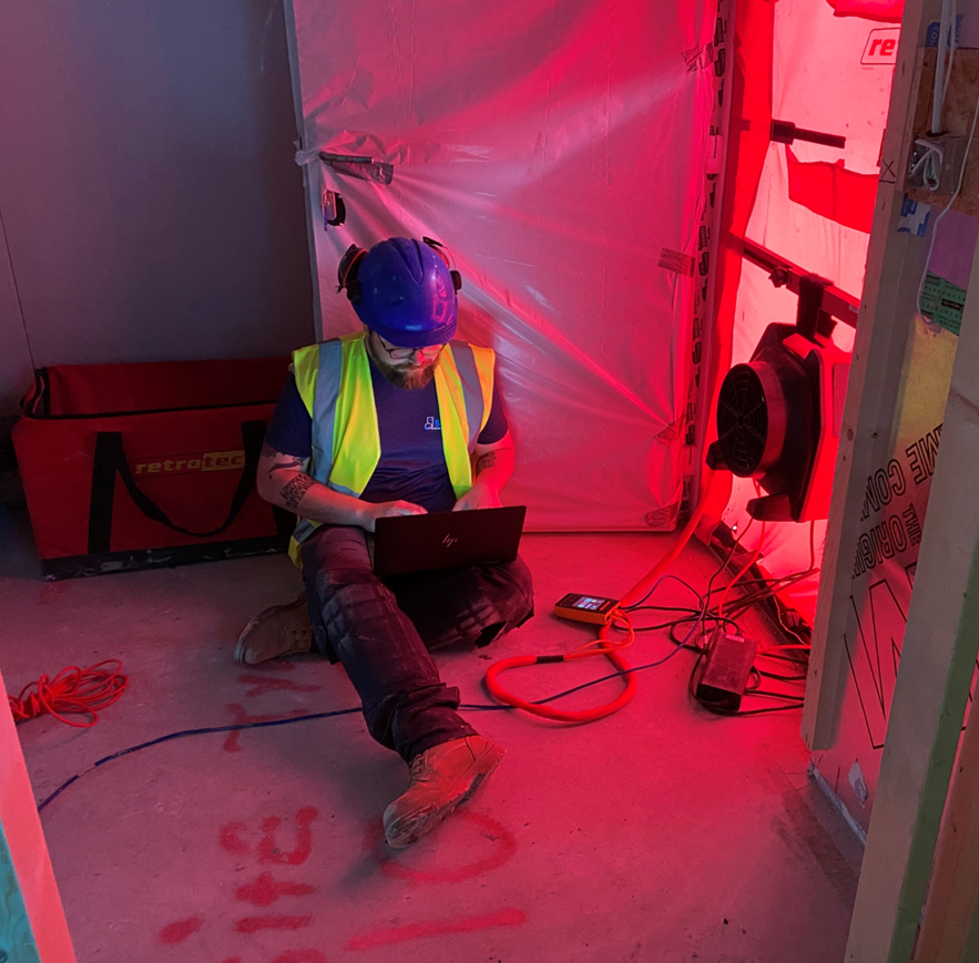 Air leakage testing, also known as air tightness testing or blower door testing, is a diagnostic procedure used to measure the extent to which air can unintentionally infiltrate or exfiltrate from a building. Air tightness testing or air pressure testing is mandatory for all new dwellings and must not exceed 5/m2/hr/m2 under the current Building Regulation Part(L)